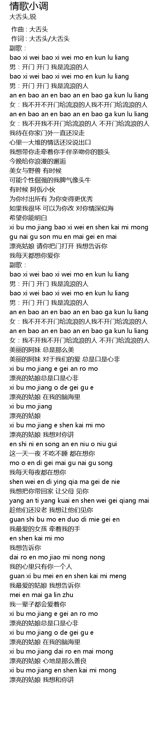 | [00:01.000] | 作词 : 大舌头/大舌头 |
