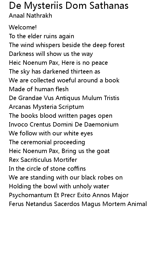 De Mysteriis Dom Sathanas Lyrics