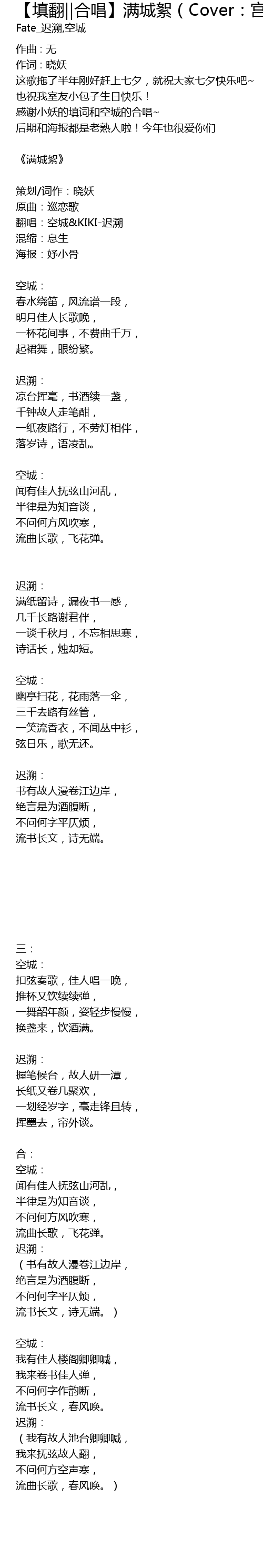 | 感谢小妖的填词和空城的合唱~ | |
