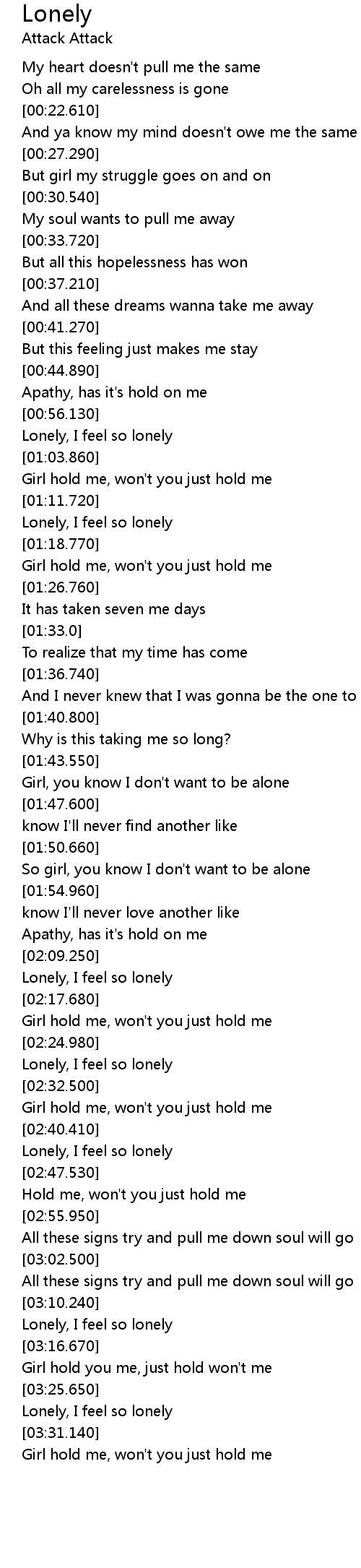 | [03:12.800] | Lonely, I feel so lonely |