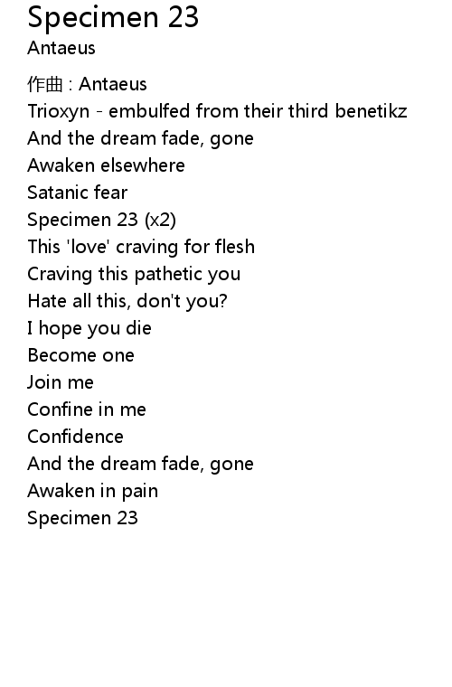 | Song | Specimen 23 |