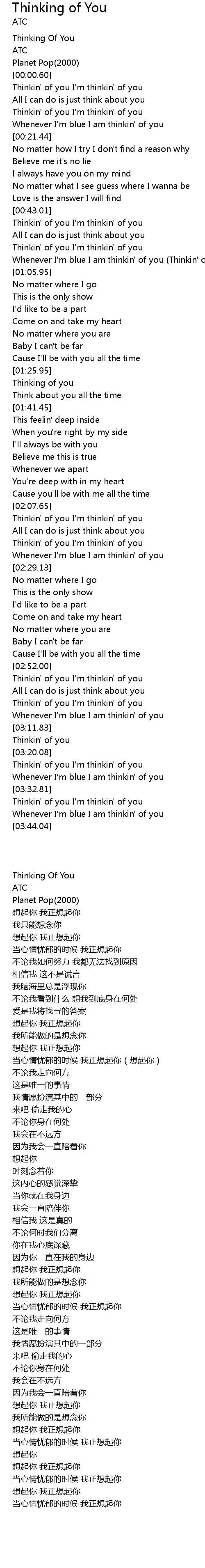 Thinking Of You |