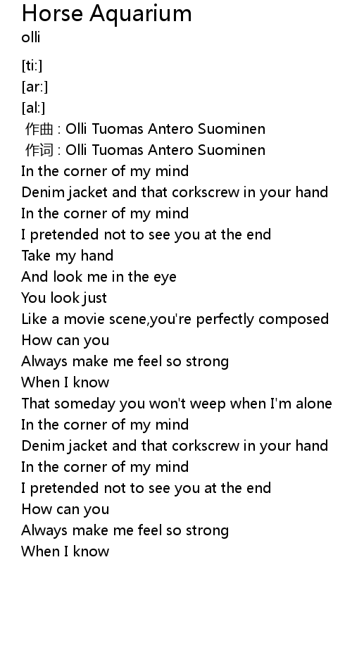| [00:01.000] | 作词 : Olli Tuomas Antero Suominen |