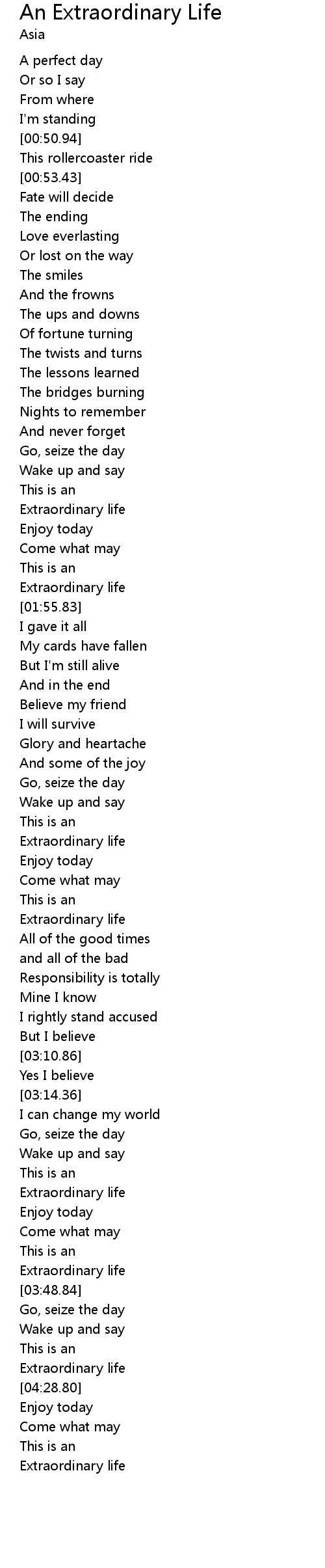 | [04:23.70] | Extraordinary life |