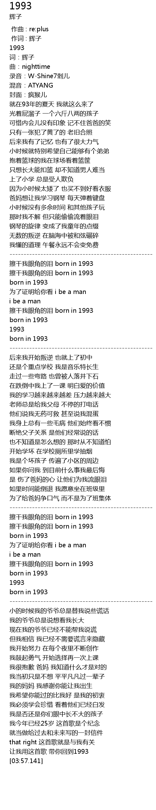 | [01:19.302] | 擦干我眼角的泪 born in 1993 |