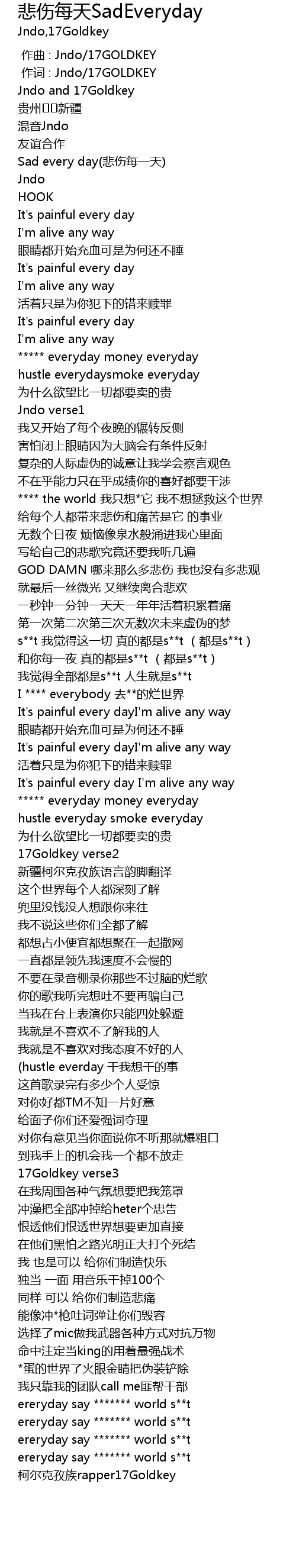 | [01:29.445] | I **** everybody 去**的烂世界 |