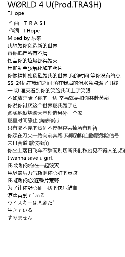 | [00:54.511] | 你说你讨厌这个世界那我毁了它 购买地狱烧毁天堂创造另外一个家 |