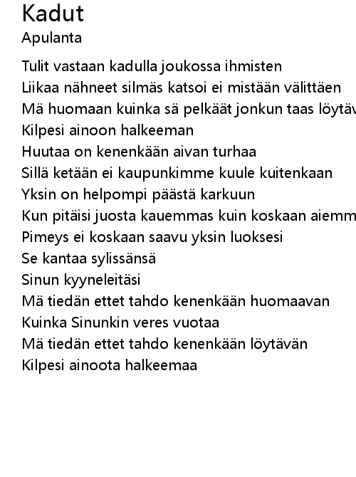 | Sill ket n ei kaupunkimme kuule kuitenkaan | |