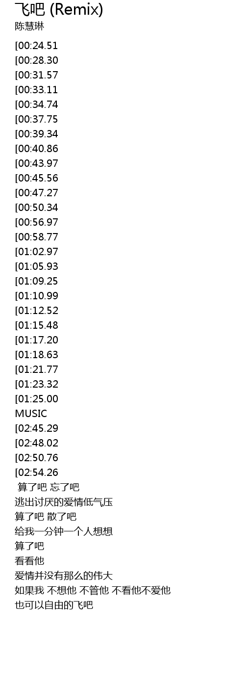 | [03:19.32] | 也可以自由的飞吧 |
