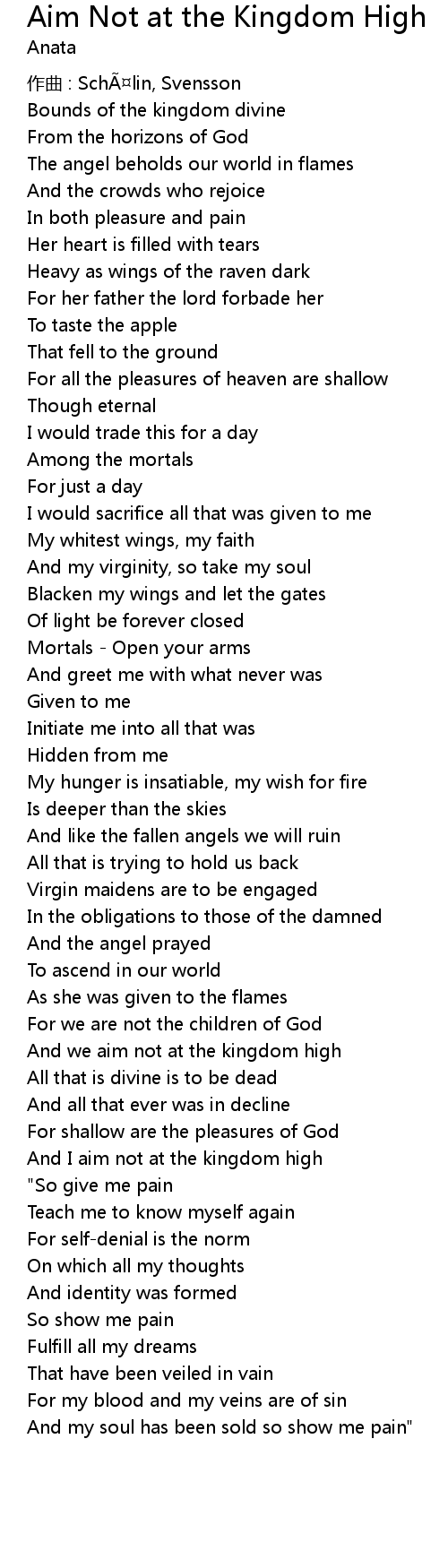 | Song | Aim Not at the Kingdom High |