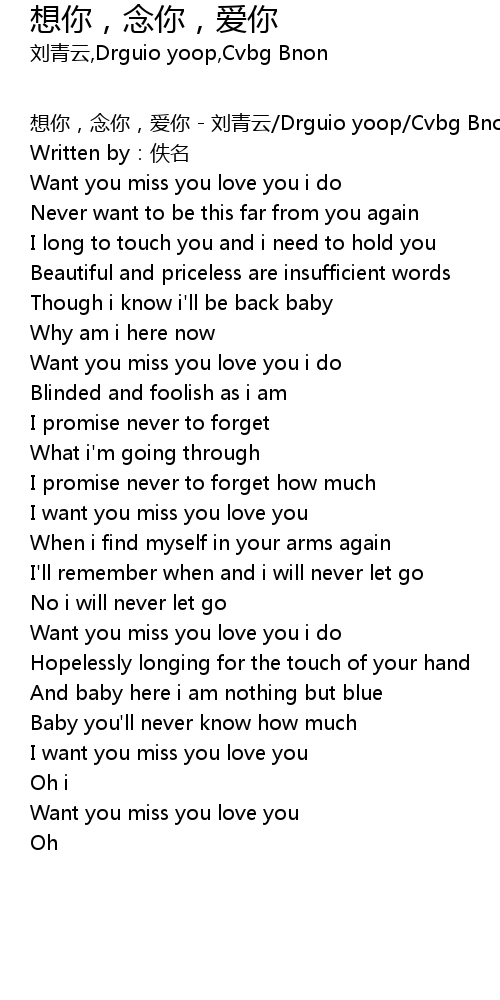 | xiǎng nǐ, niàn nǐ, ài nǐ liú qīng yún Drguio yoop Cvbg Bnon | |