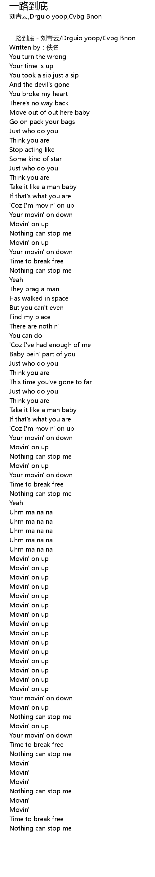 | 一路到底 - 刘青云/Drguio yoop/Cvbg Bnon | |