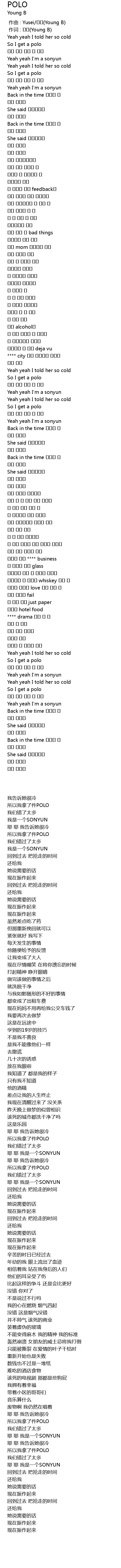 | [00:22.82] | So I get a polo |
