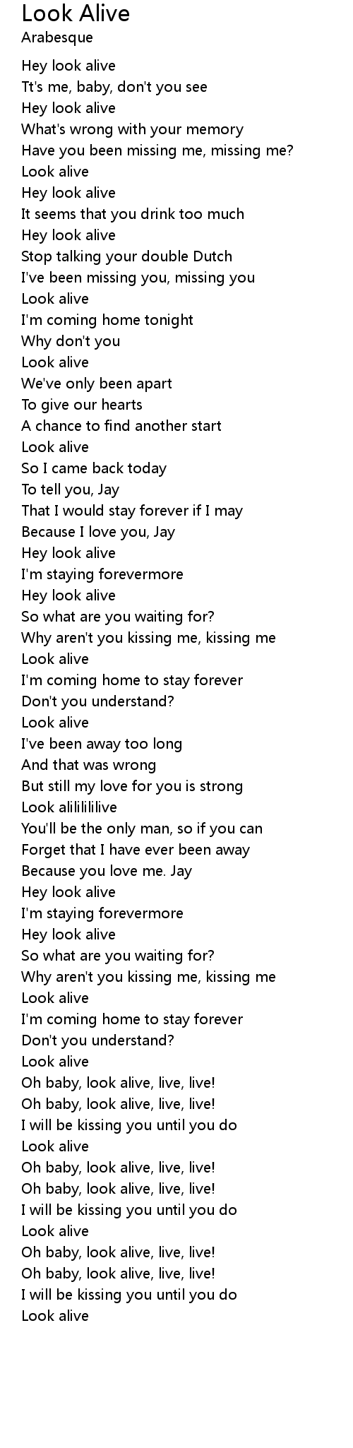 Oh baby, look alive, live, live! |