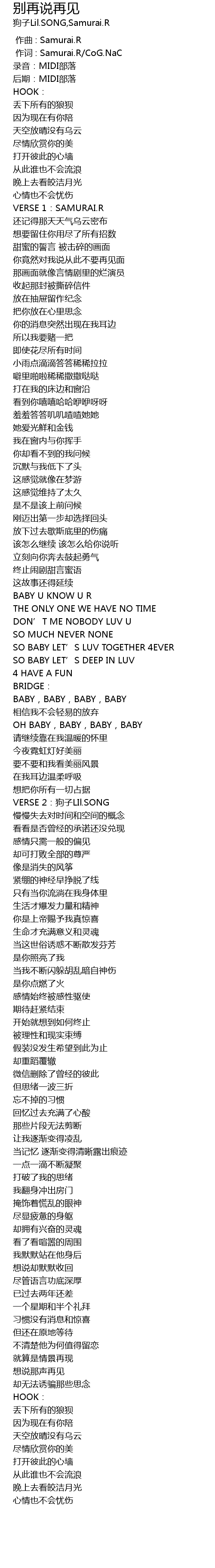 | [00:01.000] | 作词 : Samurai.R/CoG.NaC |