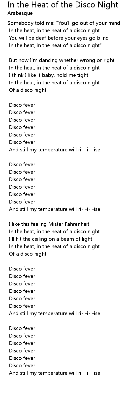 In the heat, in the heat of a disco night"