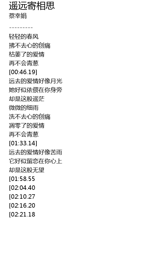 | [02:57.67][02:10.27] | 遥远的爱 |
