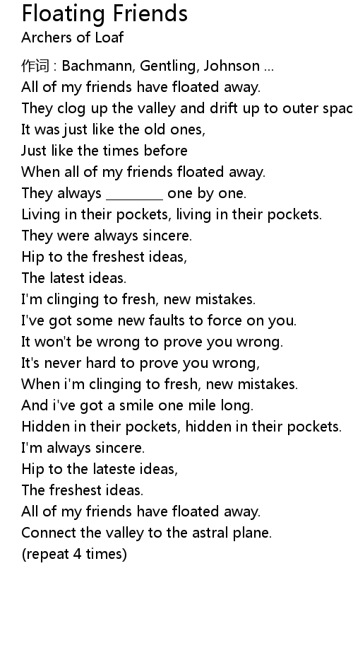 | All of my friends have floated away. | |