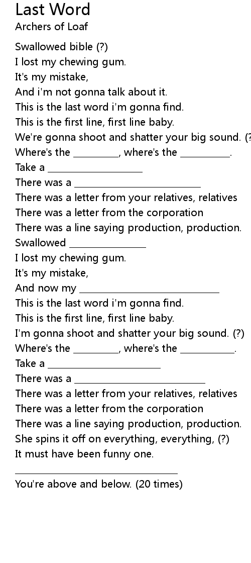 This is the last word i'm gonna find. |