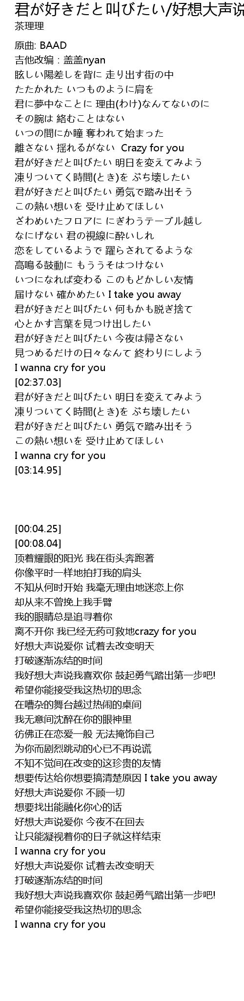 | [00:58.17] | 君が好きだと叫びたい 明日を変えてみよう |
