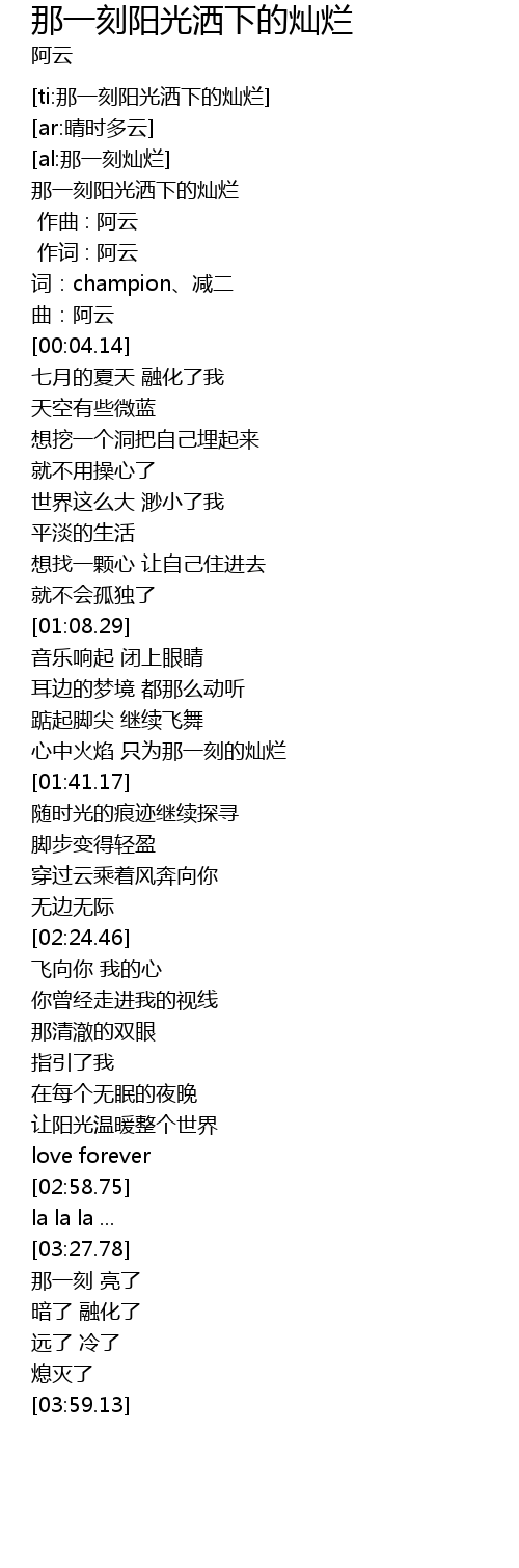 | [00:00.000] | 作曲 : 阿云 |