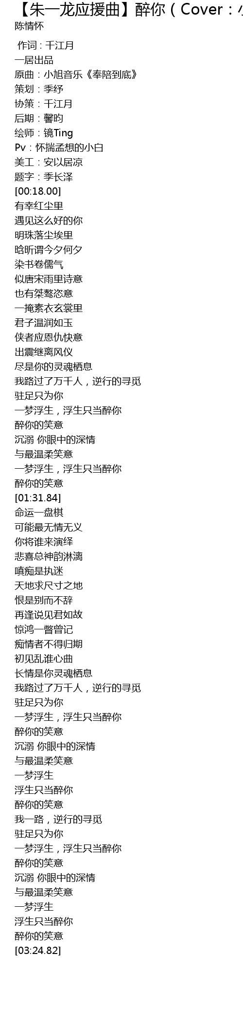 | Song | 【朱一龙应援曲】醉你(Cover:小旭音乐) |
