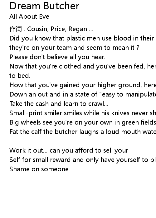 | Fat the calf the butcher laughs a loud mouth watering, slaughtering your dreams. | |