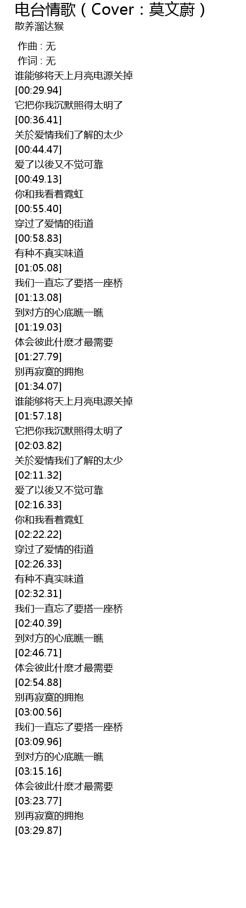 | [00:30.34] | 它把你我沉默照得太明了 |