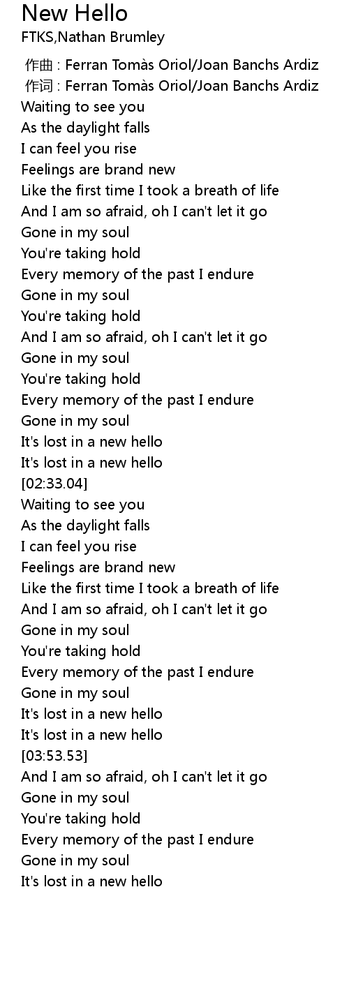 | [01:59.91] | It' s lost in a new hello |