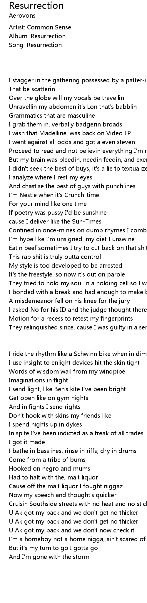 Song: Resurrection |