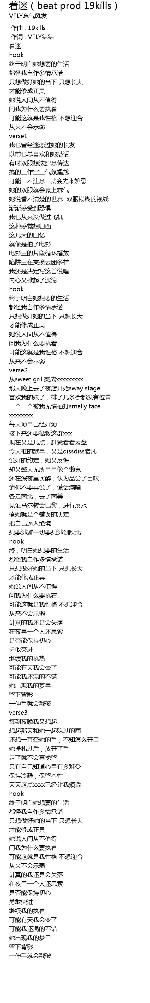 | [00:01.000] | 作词 : VFLY狒狒 |