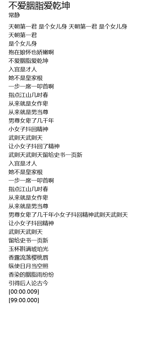 | [03:03.70] | 男尊女卑了几千年小女子抖回精神武则天武则天 |