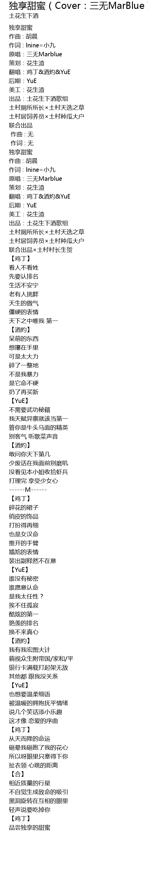 | 出品:土花生下酒歌组 | |