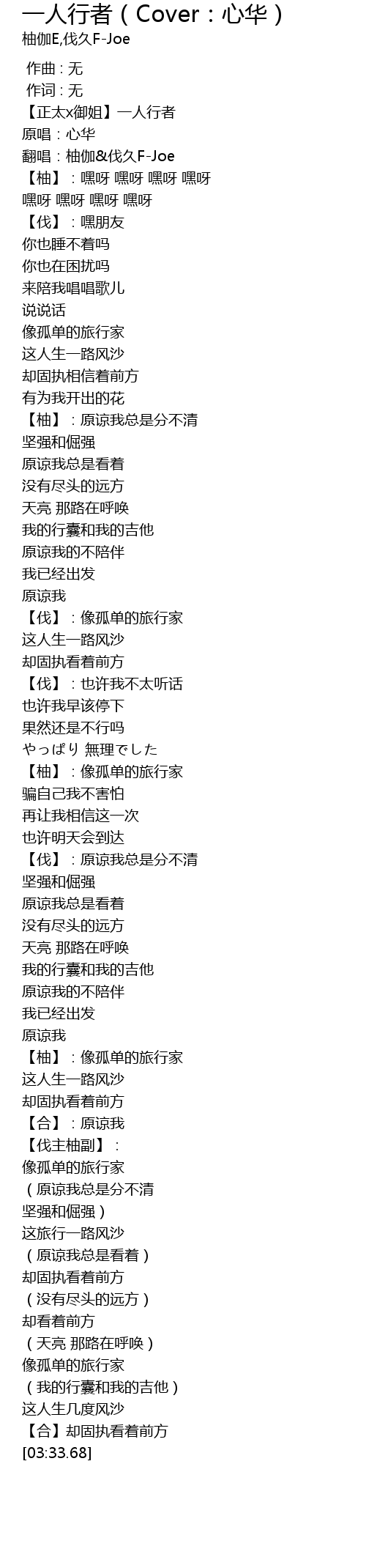 | [00:02.18] | 翻唱:柚伽&伐久F-Joe |