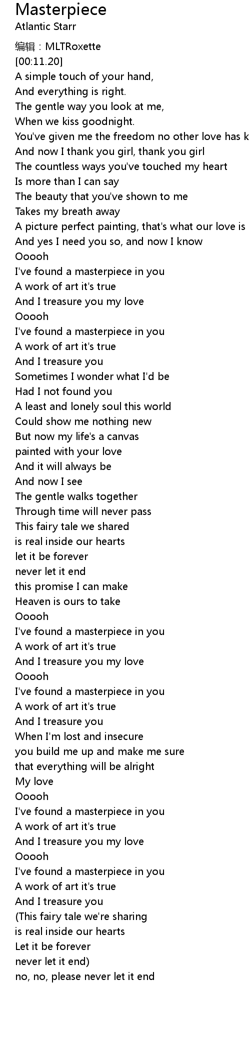 | [00:42.09] | The countless ways you' ve touched my heart |