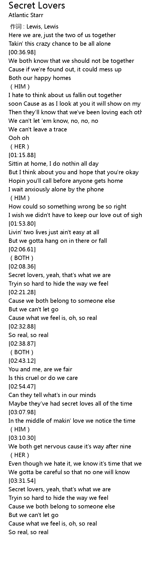 | [03:36.09] | Secret lovers, yeah, that's what we are |