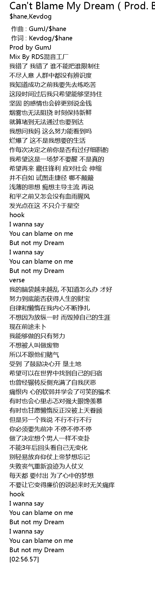 | [00:01.000] | 作词 : Kevdog/$hane |