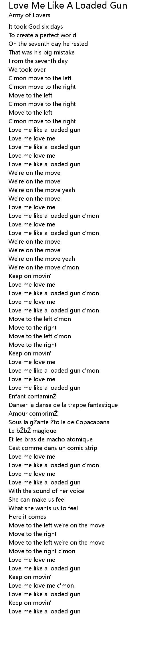 | Love me like a loaded gun c'mon | |