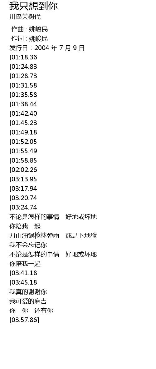 | [00:34.11][01:35.58] | 我也只想到你 |