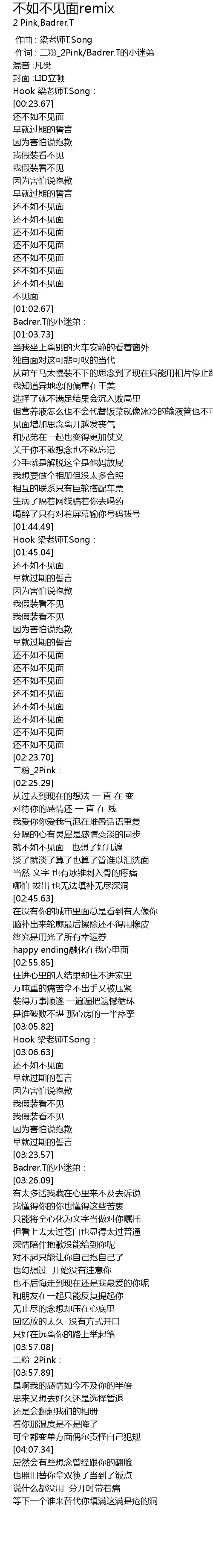 | [00:01.000] | 作词 : 二粉_2Pink/Badrer.T的小迷弟 |