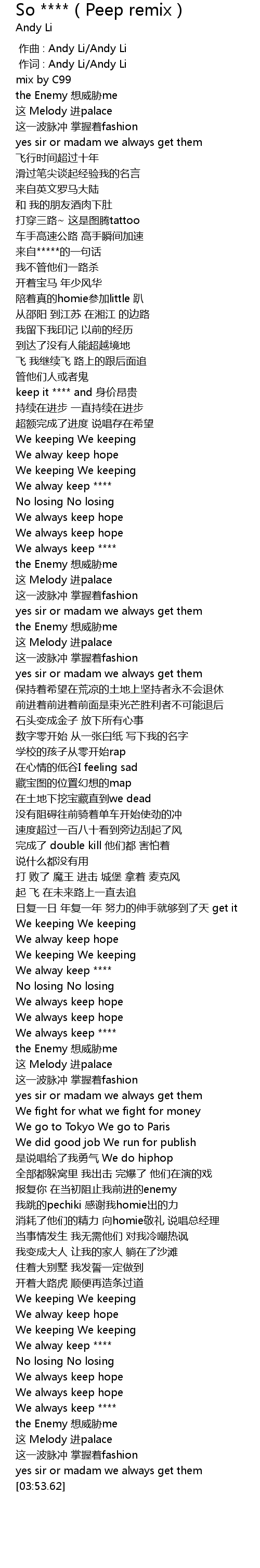 | [03:40.03] | the Enemy 想威胁me |