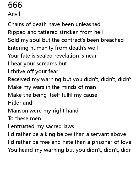 | Received my warning but you didn't, didn't, didn't learn 666 666 | |