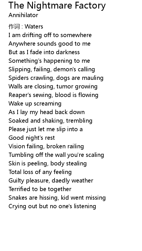 | Song | The Nightmare Factory |