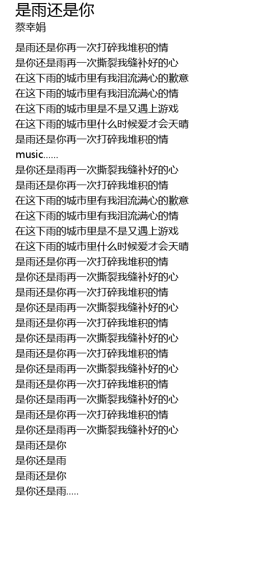 | [02:58.43] | 是雨还是你再一次打碎我堆积的情 |