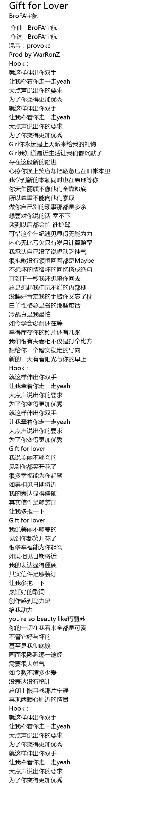 | [00:01.000] | 作词 : BroFA宇航 |