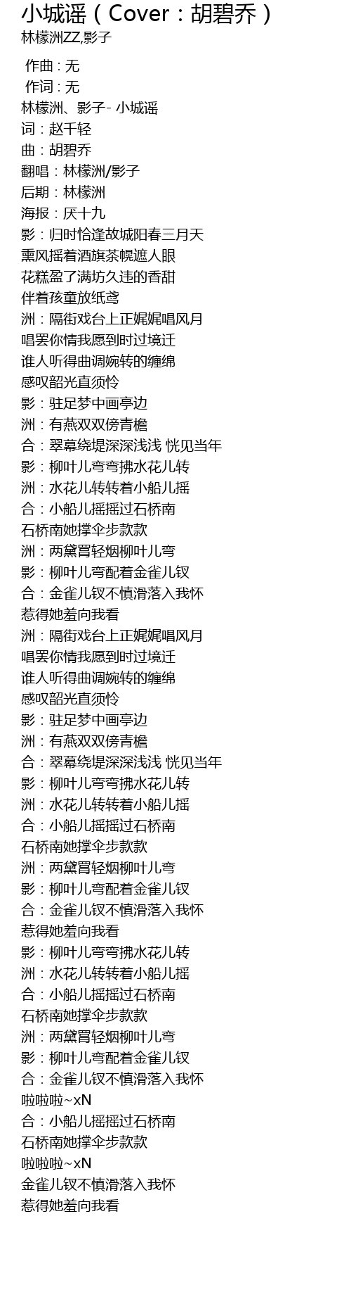 | [00:00.60] | 林檬洲、影子- 小城谣 |