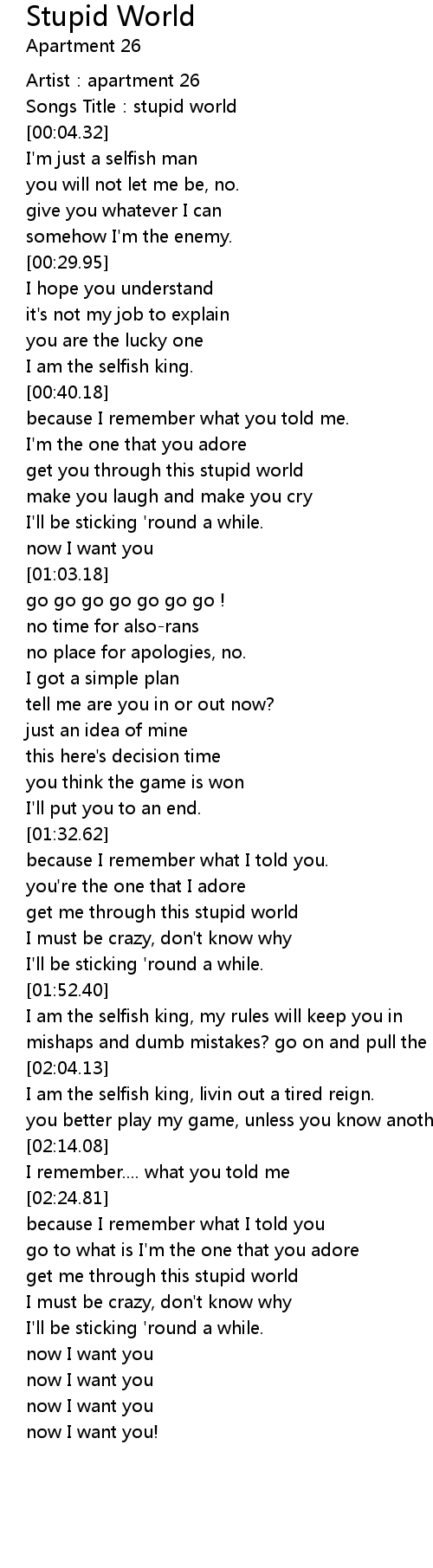 | [01:55.40] | I am the selfish king, my rules will keep you in |