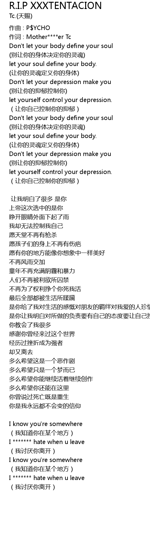 | 作词 : Mother****er Tc | |