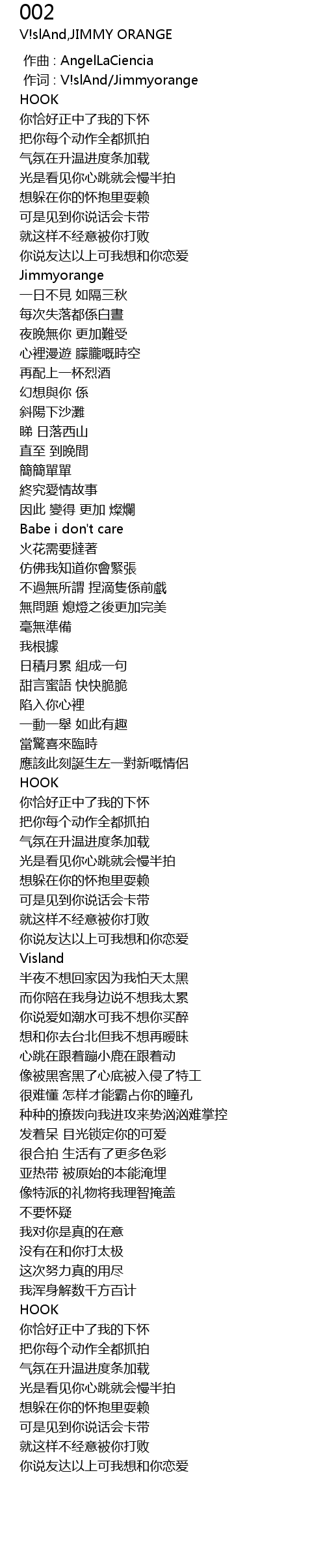 | [00:01.000] | 作词 : V!slAnd/Jimmyorange |