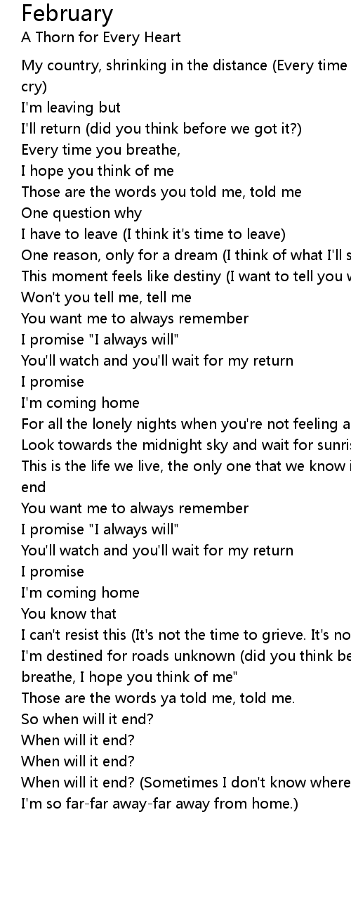 When will it end? (Sometimes I don't know where I am-where I'll be. Feels like I'm so far-far away-far away from home.) |